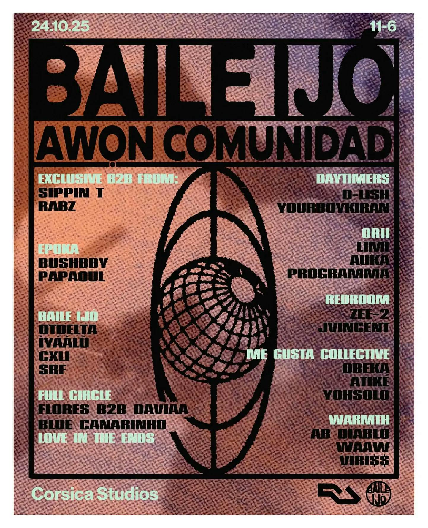 Awon communidad translates to "the community" in Yoruba and Spanish and for this special one-off occasion we've brought together 9 different collectives/b2bs with sounds from across the globe. Alongside ourselves, we have sets from members from Epoka, Daytimers, ORII, Love In The Ends, Full Circle, Me Gusta, Redroom, Warmth and topped off by a debut b2b from Sippin' T and Rabz. This scale of linkup is unprecedented and we’re so gassed to bring all of these sick selectors under one roof on the 24th October. Don’t sleep on this one, gunna be one to remember.
